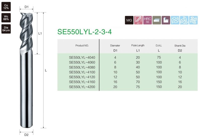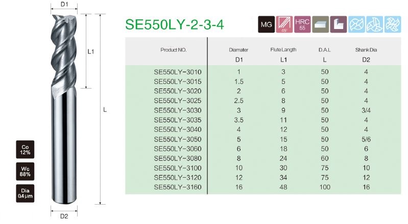 55 راکول، بالاترین سختی ماده ای است که این فرز انگشتی می تواند ماشینکاری نماید.