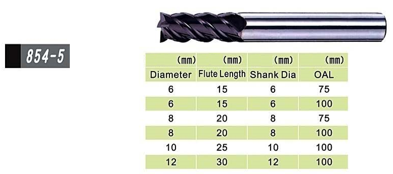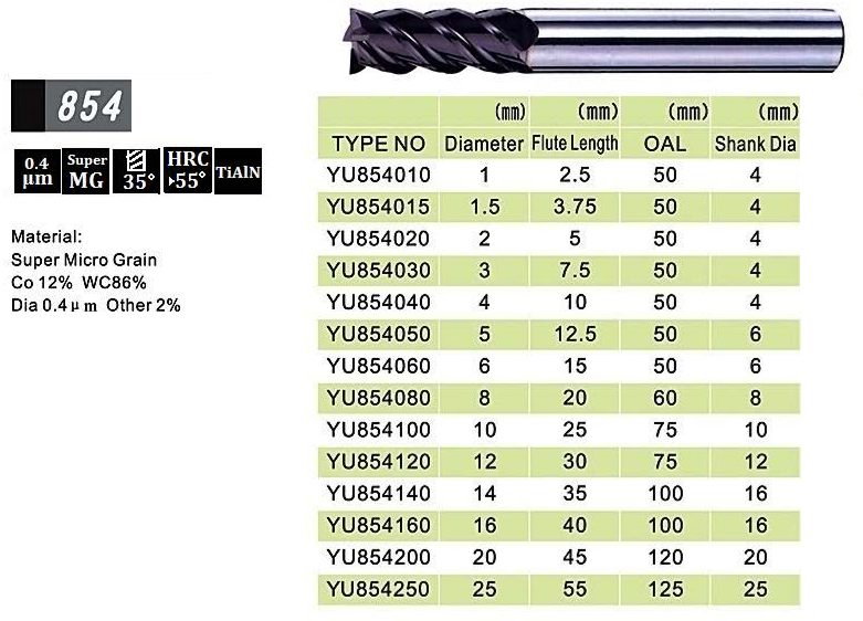 (چهار پر، با طول استاندارد برای ماشینکاری فولاد تاسختی 55HRC):